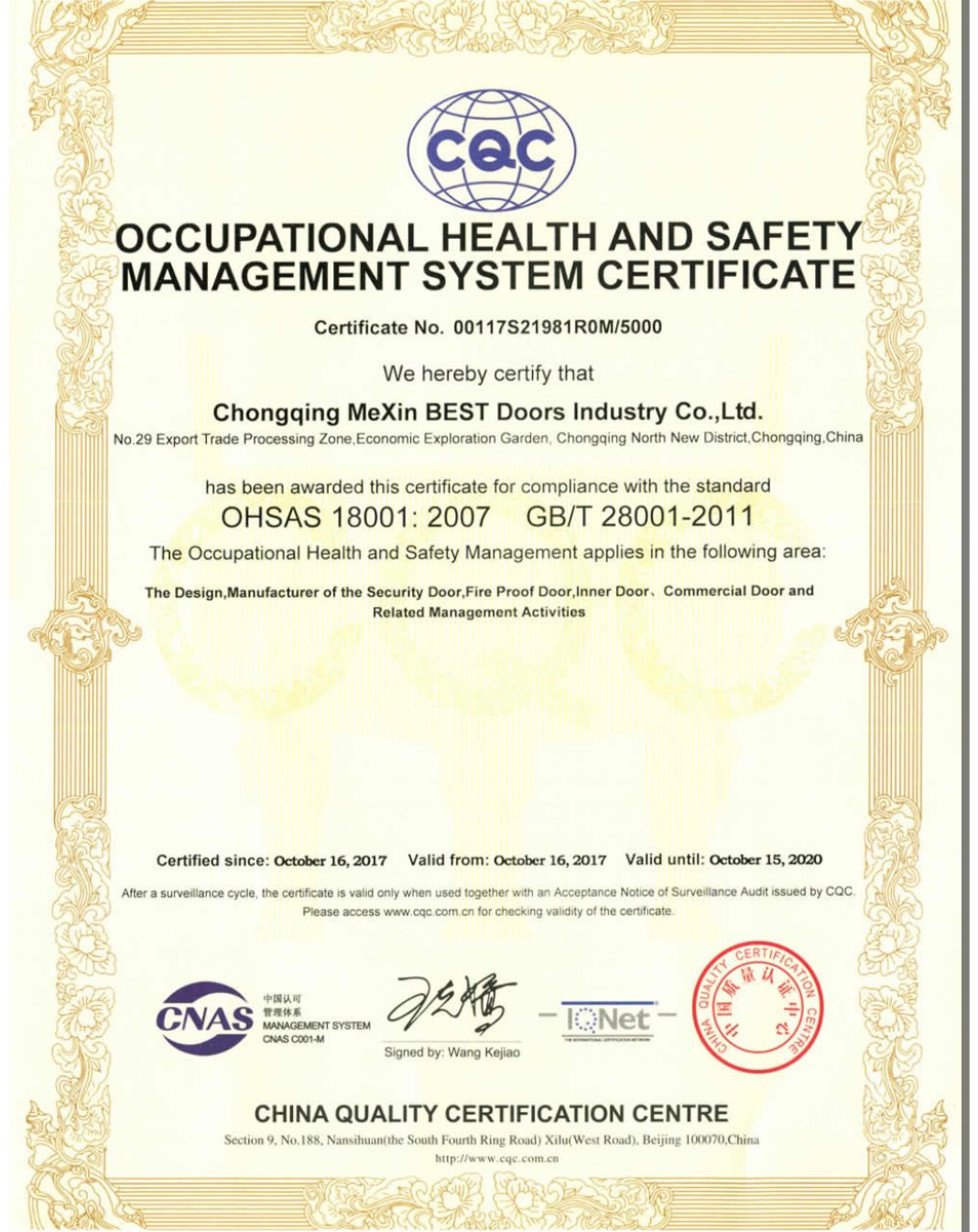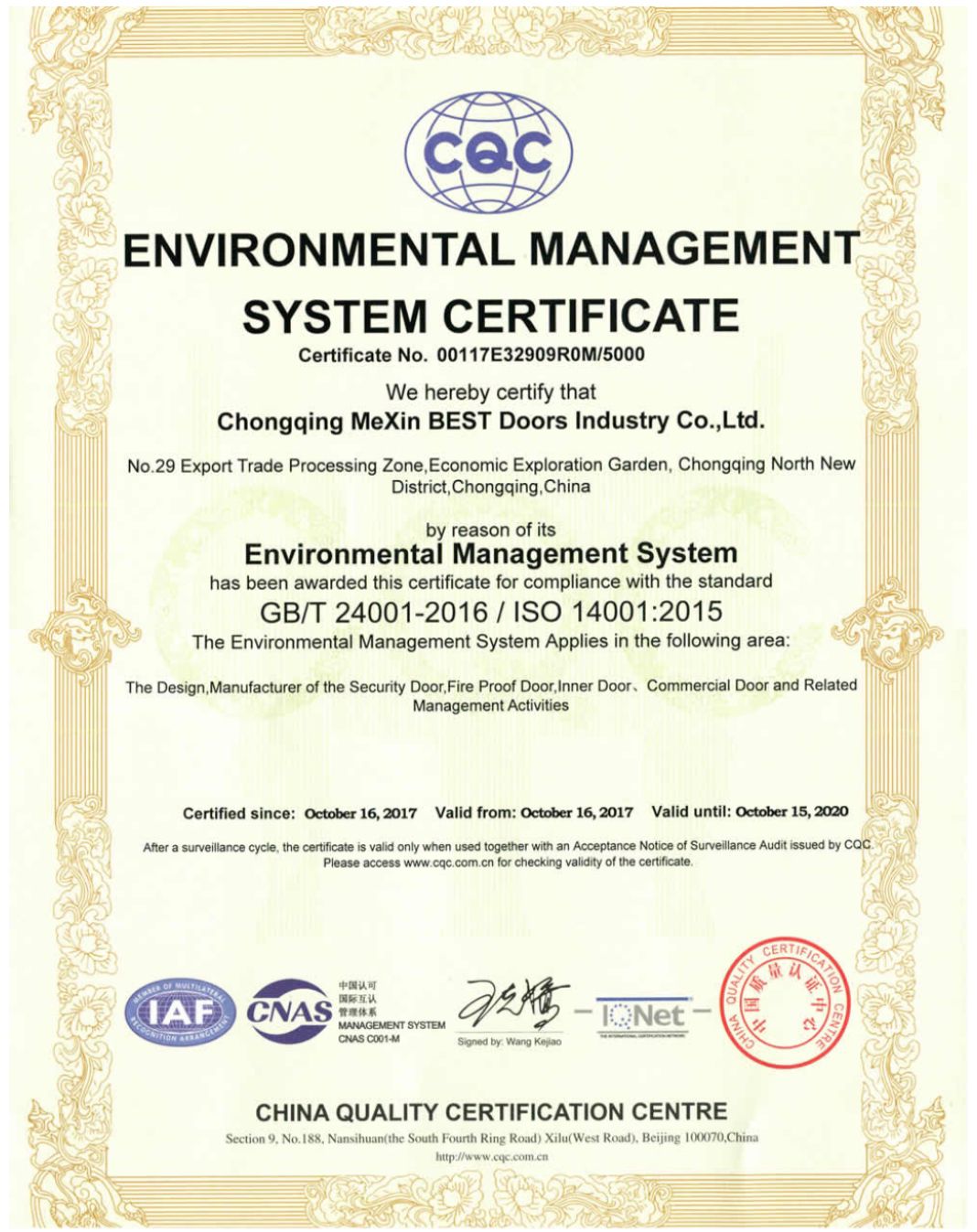 Environmental Management System Certificate