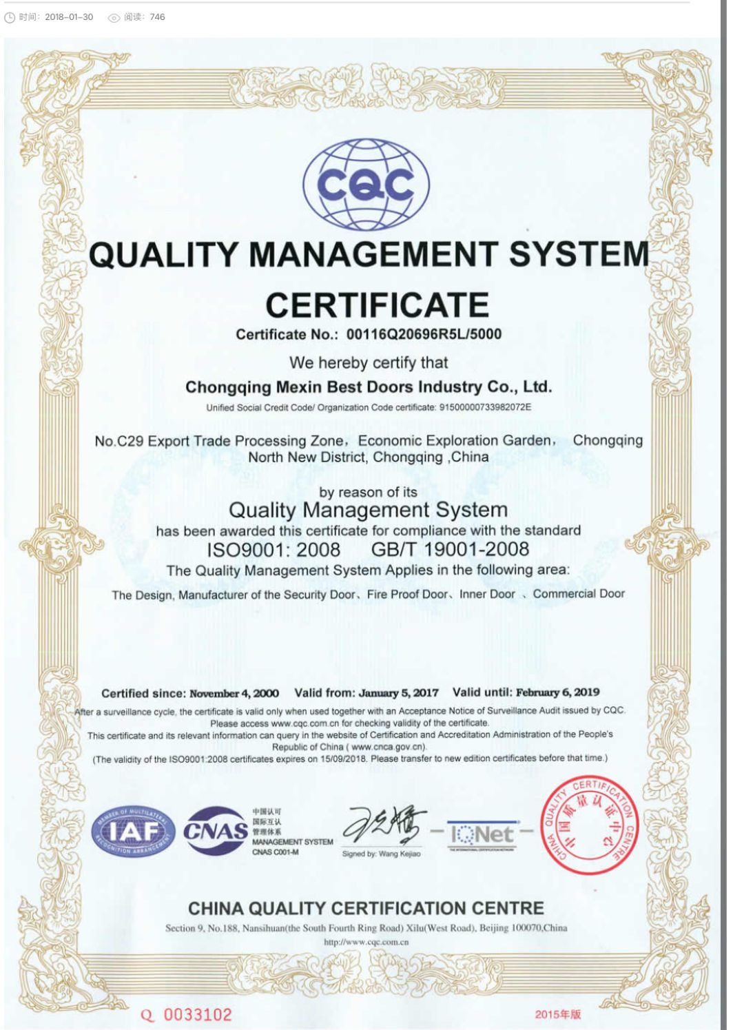 Quality Management Certificate